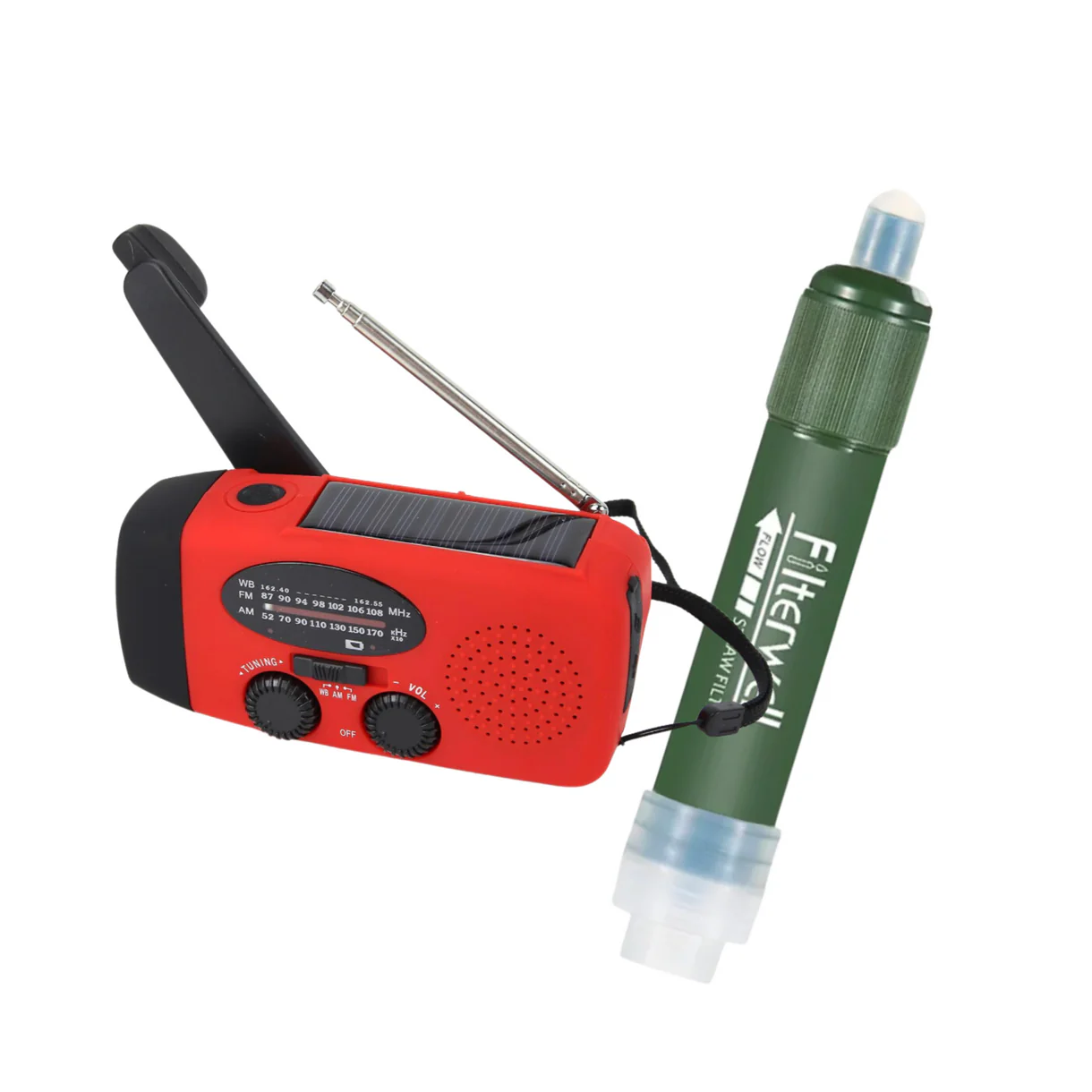 Innehåller vår uppskattade portabla vattenrenare och den livsviktiga nödradion.