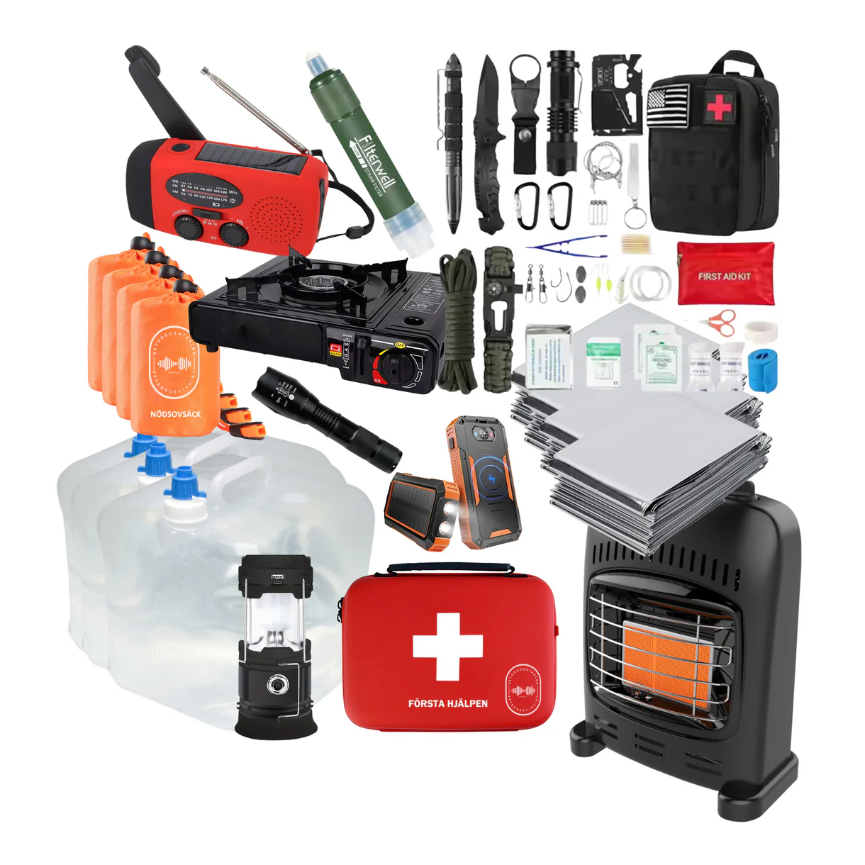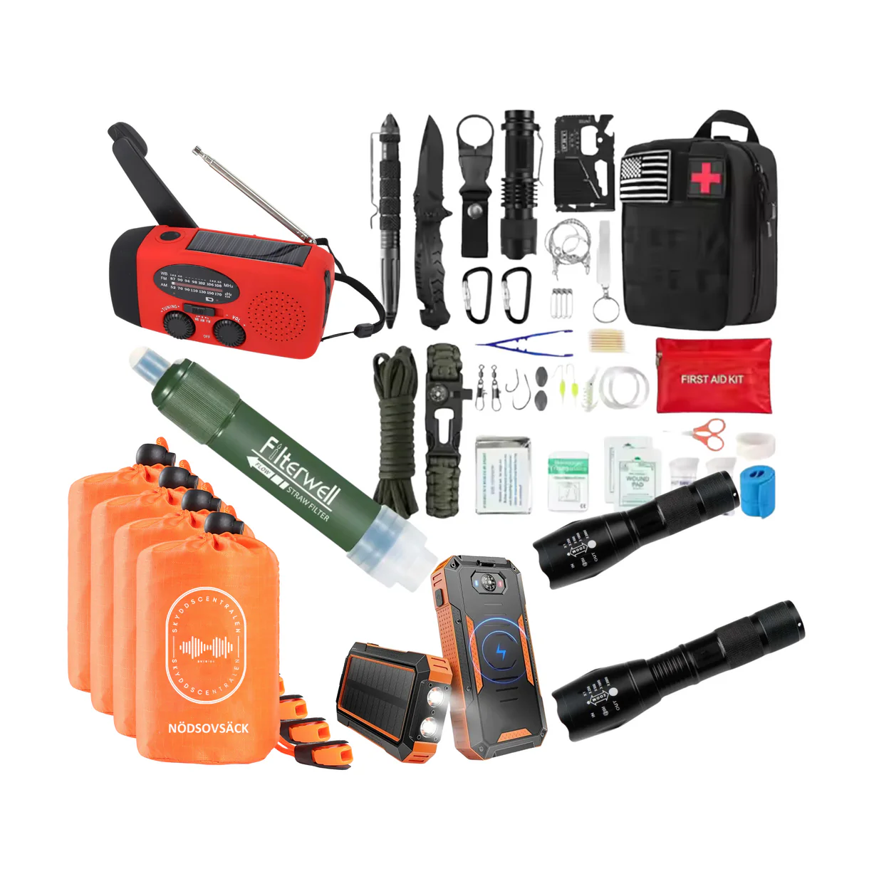 Vårt största krispaket innehåller allt det som behövs för att hålla dig och din familj redo för en mängd olika situationer, från strömavbrott och snöstormar till pandemier och andra oväntade kris - och krigssituationer.