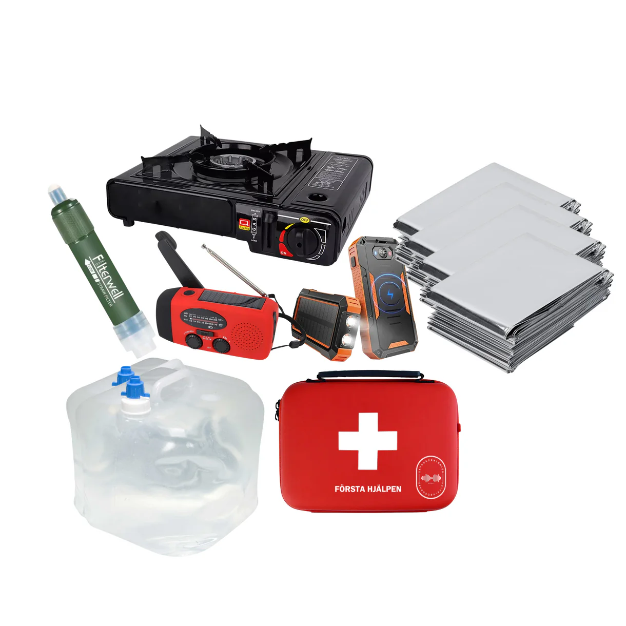 Ett rejält och mångsidigt krispaket som täcker många av de nödvändiga behoven i kris och nödsituationer. Utmärkt start på din hemberedning!