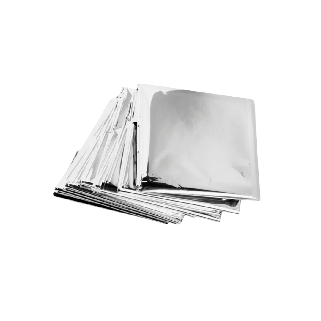 Denna nödfilt är konstruerad för att vara både vind- och vattentät och kan användas för att snabbt återställa kroppsvärmen eller fungera som ett temporärt skydd mot vind och regn. Tillverkad av praktiskt silverfolie, är filten kompakt och tar upp lika lite plats som en mobiltelefon.
